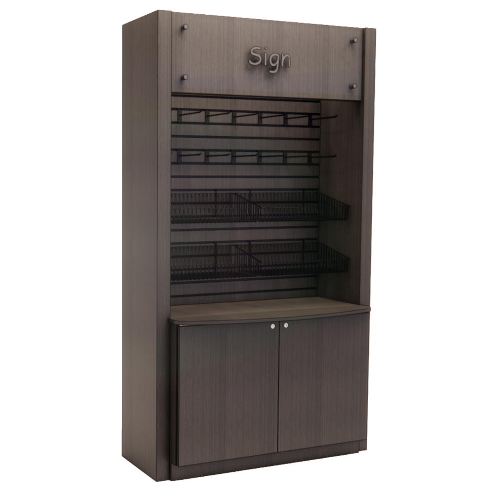 A 96″ tall Merchandiser with Storage Cabinet